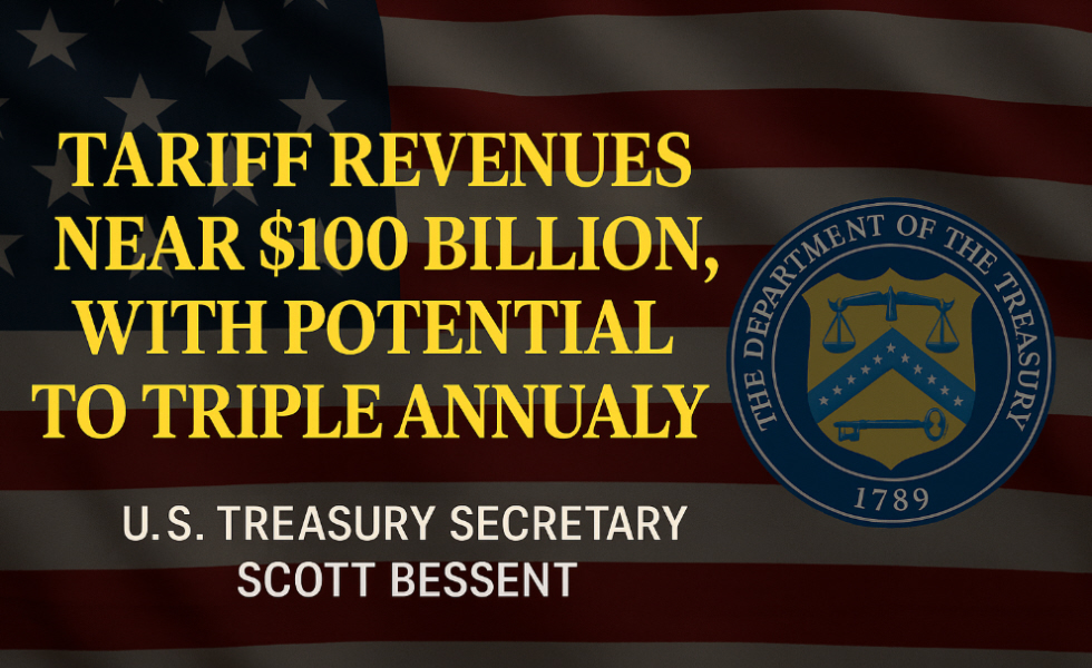 According to U.S. Treasury Secretary Scott Bessent, the United States has recently collected nearly $100 billion USD (approximately ā¬85.4 billion) in tariffs. āWeāre getting close to the $100 billion mark. I believe we could reach $300 billion per year,ā Bessent said during an interview withĀ