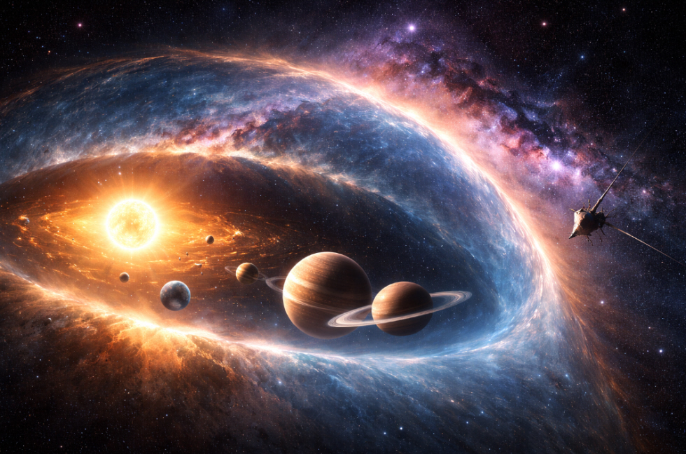 For decades, the Solar System was commonly portrayed as a nearly perfect bubble enclosing the Sun and its planets, separated from interstellar space by a clear boundary known as the heliopause. This simple image, repeated in textbooks, scientific diagrams, and popular culture, shaped a tidy and reassuring vision of our cosmic neighborhood. That picture, however, has been steadily challenged by the Voyager probes.
