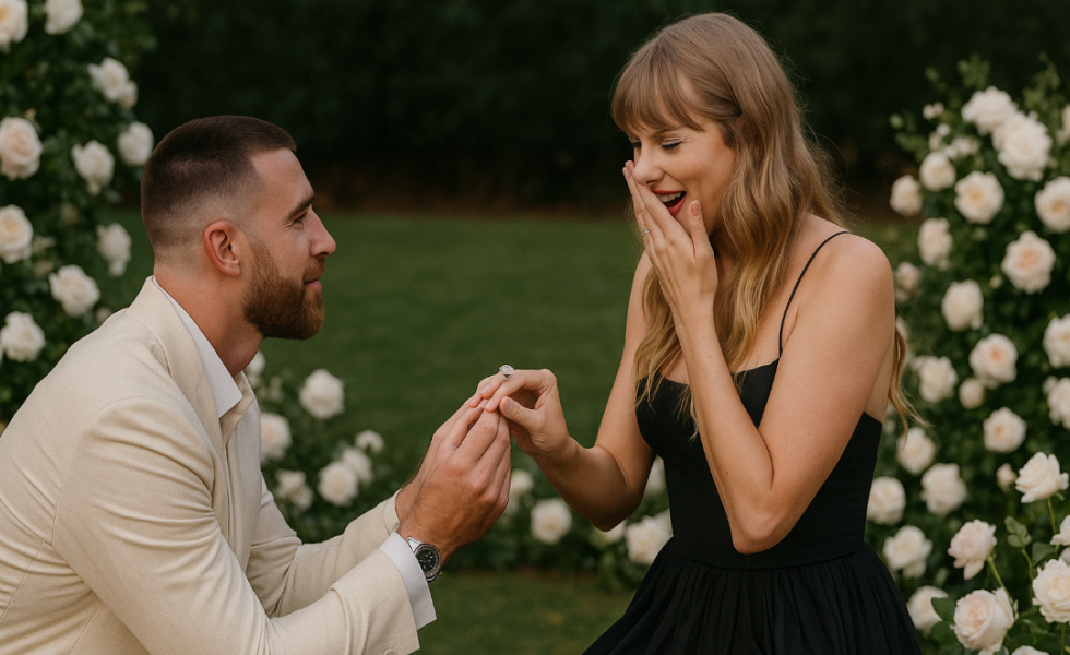 Taylor Swift and Travis Kelce surprised the world by officially announcing their engagement with a joint Instagram post that quickly went viral. With the phrase “Your English teacher and your gym teacher are getting married,” the singer and the Kansas City Chiefs player confirmed they are taking the next step in their relationship. The proposal took place in a garden decorated with white and pink flowers, a dreamlike setting accompanied by the music of “So High School,” one of Swift’s most recent songs.