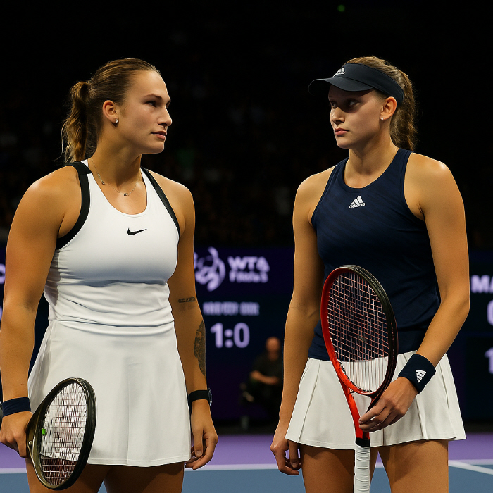 World No. 1 Aryna Sabalenka and Elena Rybakina will face off in the WTA Finals championship match in Riyadh this Saturday after defeating Amanda Anisimova (6-3, 3-6, 6-3) and Jessica Pegula (4-6, 6-4, 6-3) in the semifinals. It will be Sabalenkaâs second appearance in a season-ending âMastersâ